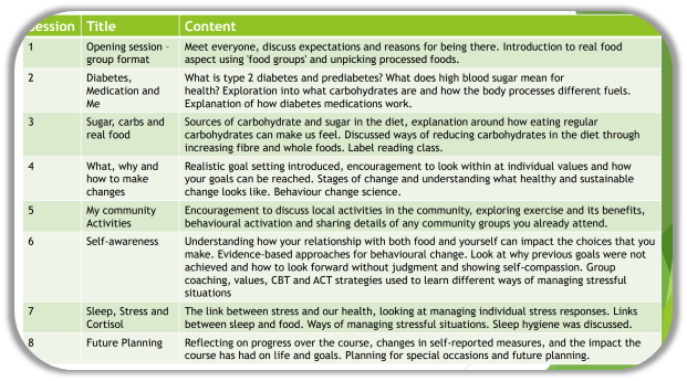 To do this, all information in the programme is based on the latest scientific evidence, it combines emphasis on ‘real food’, practical dietary health education, coaching psychology, and community connection – all delivered in a friendly and supportive environment in community venues, by NHS dietitians and health coaches.